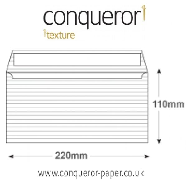 Prestige Envelope* Brand CONQUEROR WINDOW = No SIZE = DL 110 x 220mm TYPE = Wallet (flap on long edge) FLAP = Super Seal (Peel and Seal) ..