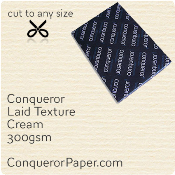 Prestige Brand CONQUEROR Paper Premium Quality TINT: Cream FINISH: Laid (classic textured) PAPER: 300 gsm QUANTIT..