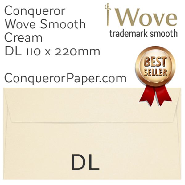 Prestige Paper Brand CONQUEROR WINDOW = No SIZE = DL 110 x 220mm TYPE = Wallet (flap on long edge) FLAP = Super Seal (Peel and Seal) COLO..