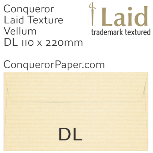 WINDOW = No SIZE = DL 110 x 220mm TYPE = Wallet (flap on long edge) FLAP = Super Seal (Peel and Seal) COLOUR = Vellum / Chamois TEXTURE = Lai..