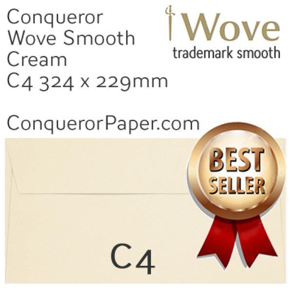Prestige Paper Brand CONQUEROR WINDOW = No SIZE = C4 229 x 324mm TYPE = Pocket (flap on short edge) FLAP = Super Seal (Peel and Seal) COL..