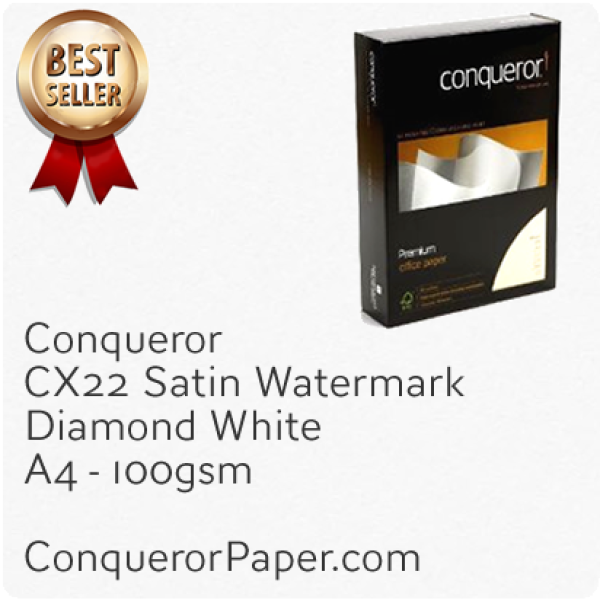 Tags: Conqueror CX22, TINT:DiamondWhite, FINISH:CX22, PAPER:100gsm, SIZE:A4 210x297mm, QUANTITY:2, 500Sheets, WATERMARK:Yes