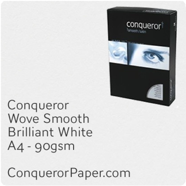 Tags: Conqueror Wove, TINT:BrilliantWhite, FINISH:Wove, PAPER:90gsm, SIZE:A4 210x297mm, SAMPLE