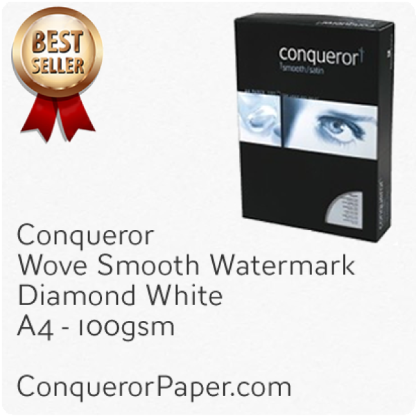 Tags: Conqueror Wove, TINT:DiamondWhite, FINISH:Wove, PAPER:100gsm, SIZE:A4 210x297mm, SAMPLE