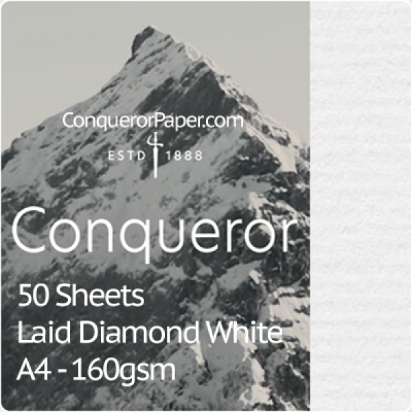 Tags: Conqueror Laid, TINT:DiamondWhite, FINISH:Laid, PAPER:160gsm, SIZE:A4 - 210x297mm, QUANTITY:50Sheets, WATERMARK:No