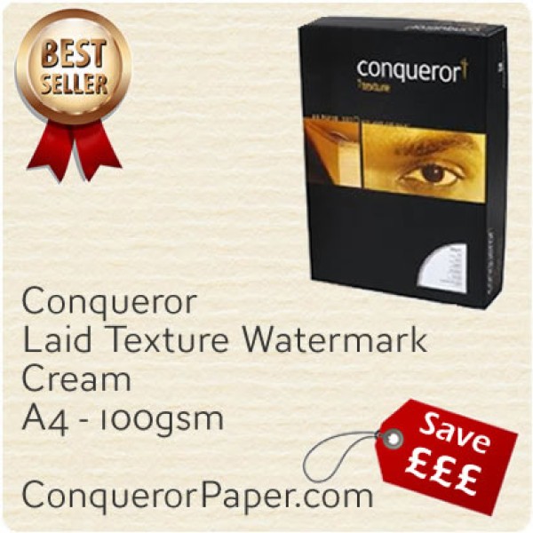 Tags: Conqueror Laid, TINT:Cream, FINISH:Laid, PAPER:100gsm, SIZE:A4 - 210x297mm, QUANTITY:250Sheets, WATERMARK:Yes