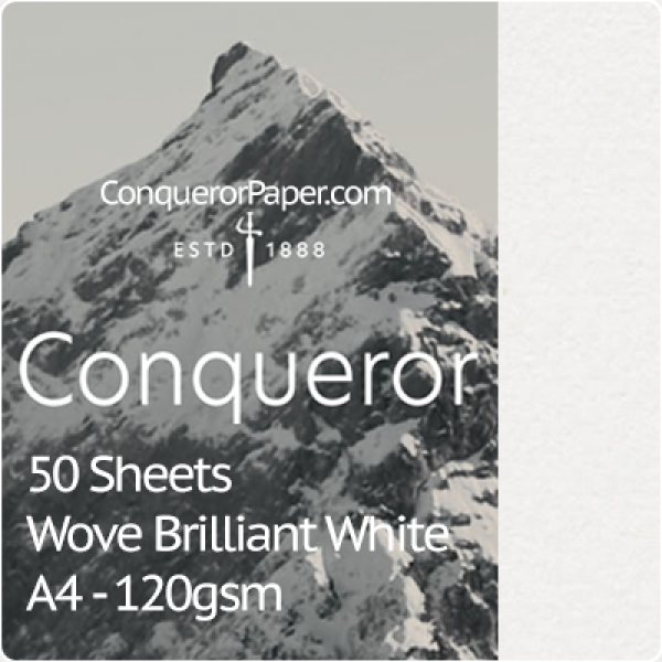 Tags: Conqueror Wove, TINT:BrilliantWhite, FINISH:Wove, PAPER:120gsm, SIZE:A4-210x297mm, QUANTITY:50Sheets, WATERMARK:No