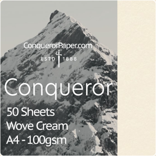 Tags: Conqueror Wove, TINT:Cream, FINISH:Wove, PAPER:100gsm, SIZE:A4 210x297mm, QUANTITY: 50Sheets, WATERMARK:Yes