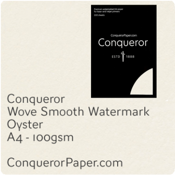 Tags: Conqueror Wove, TINT:Oyster, FINISH:Wove, PAPER:100gsm, SIZE:A4 210x297mm, QUANTITY:500Sheets, WATERMARK:Yes